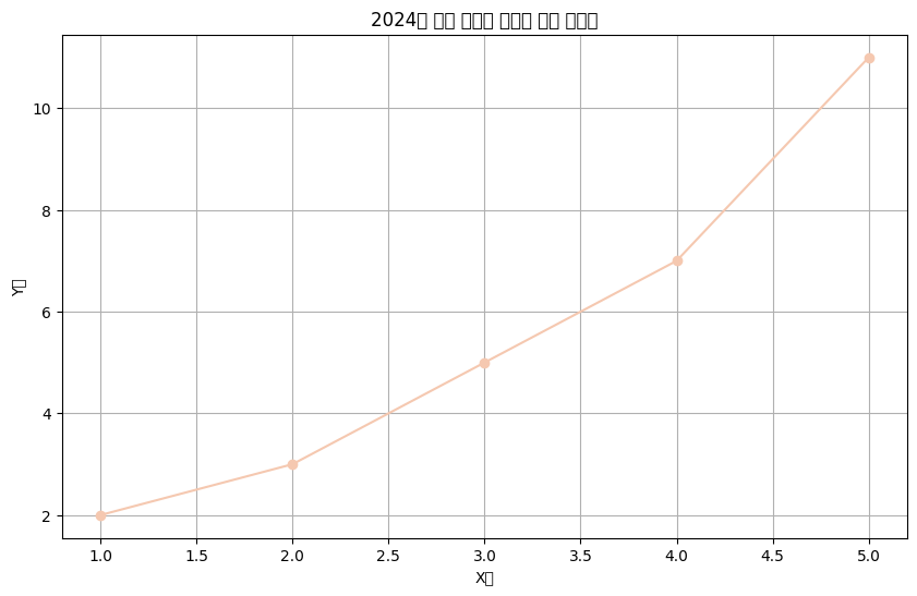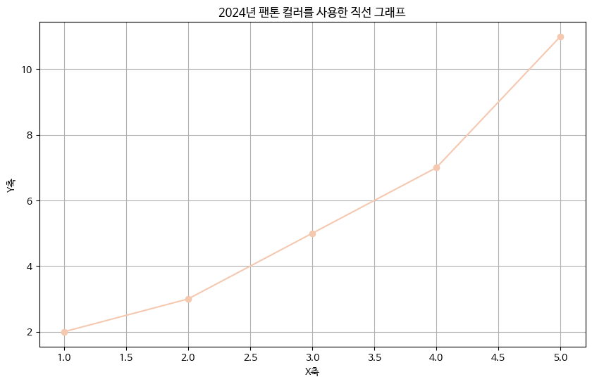 plt.title('2024년 팬톤 컬러를 사용한 직선 그래프')