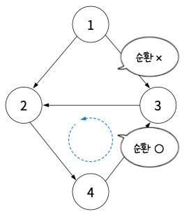 특정 노드에서 시작해 간선을 따라 다시 돌아오면 순환 그래프.