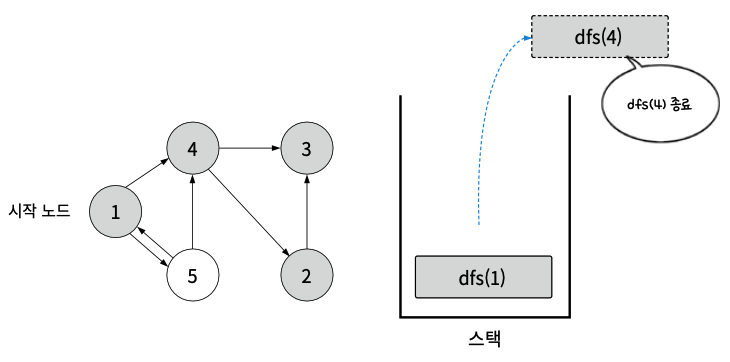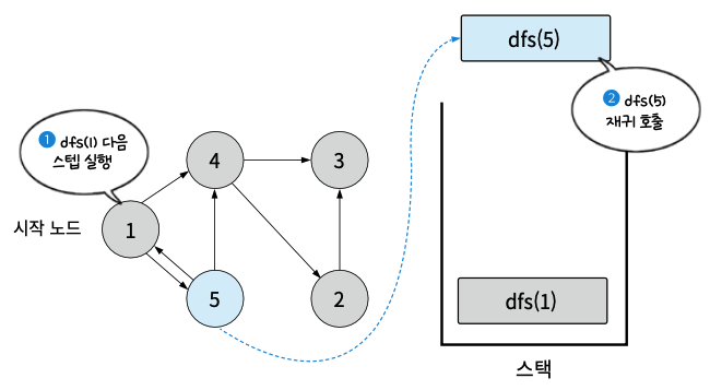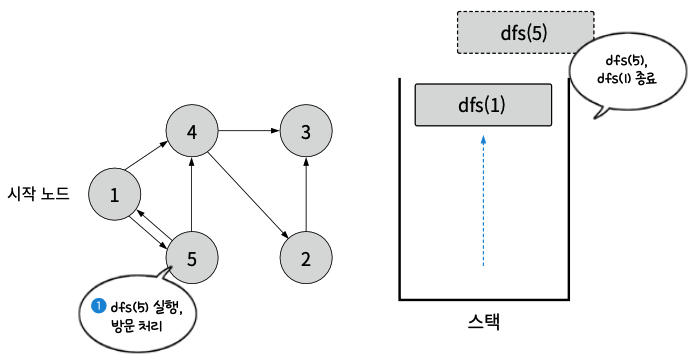 - dfs(1)의 다음 실행 스텝을 진행. dfs(5) 호출