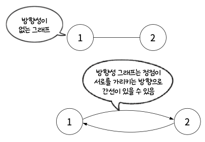 이때 방향 그래프는 어느 한쪽으로만 방향이 있는 간선이 있는 것이 아니라 서로 반대를 가리키는 간선이 있을 수도 있다.