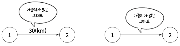 어떤 데이터는 흐름의 방향 뿐 아니라 양도 중요할 수 있음. 그런 정도를 간선에 표현할 때 이를 가중치라 함. 가중치가 있는 그래프를 가중치 그래프라고 함.