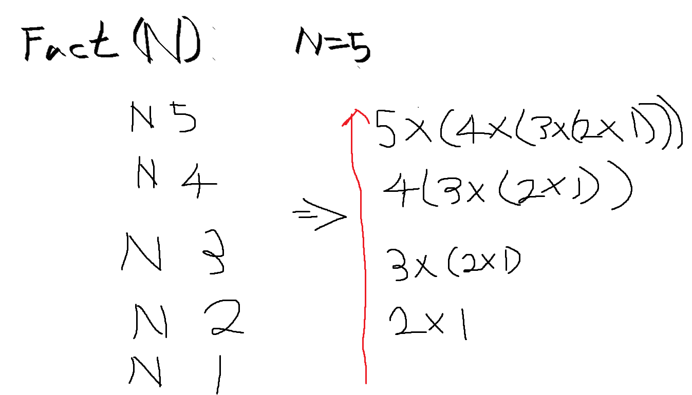 팩토리얼의 경우, 재귀 방법으로 구현이 가능하다.